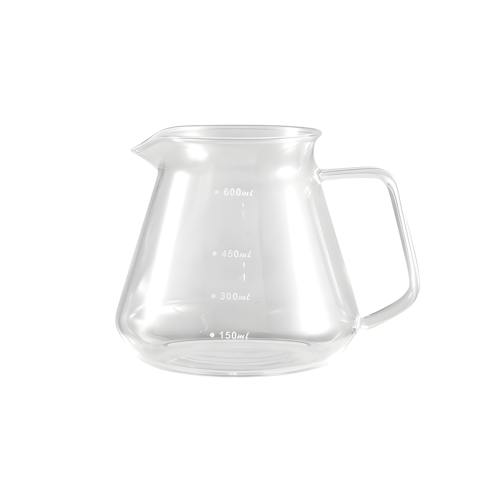 سيرفر قهوة زجاجي شفاف فاخر بسعة 600 مل، مصنوع من زجاج البوروسيليكات عالي الجودة المقاوم للحرارة والصدمات الحرارية، مما يجعله مثاليًا لتحضير المشروبات الساخنة أو الباردة دون القلق من الكسر أو التشقق. يتميز بتصميم انسيابي وأنيق يعكس البساطة العصرية، مع فوهة صب دقيقة تمنع الانسكاب وتضمن تدفقًا سلسا للقهوة.